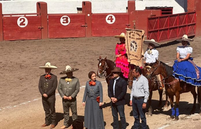 El dirigente político cerró su intervención reconociendo y aplaudiendo la participación de las escaramuzas y charros, resaltando la importancia del deporte nacional en Naucalpan.