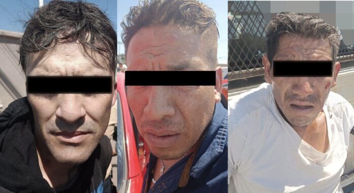 Al hacer la búsqueda pie a tierra, los policías aseguraron a Ricardo “N”, Edgar “N” y Carlos “N” a quienes se les hace saber sus derechos y fueron trasladados a las instalaciones de la Fiscalía General de Justicia del Estado de México (FGJEM) con sede en Tecámac, por su probable participación en el delito de robo con violencia.