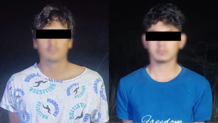 Elementos de la Fuerza Civil sorprendieron a los adolescentes de 17 años de edad mientras viajaban a bordo de una moto azul sin placas de circulación y con las luces apagadas sobre la carretera Cadereyta-Doctor González, donde les indicaron que se detuvieran.