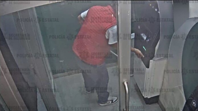 Agentes de la Secretaría de Seguridad del Estado de México detuvieron a un hombre identificado como Juan “N”, de 41 años, quien intentó robar el dinero de un cajero al buscar abrirlo con un tubo.