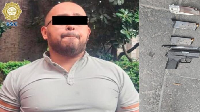 Elementos de seguridad se percataron del suceso, por lo que emprendieron una persecución en contra del hombre con arma, el cual fue detenido sobre la calle Donceles, en donde se le resguardó una arma de fuego corta, dos cargadores con 11 cartuchos útiles y una navaja.