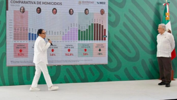 Expuso que con la Estrategia Nacional de Seguridad del Gobierno de México, el homicidio doloso registra una reducción de 18 por ciento en los últimos cinco años.