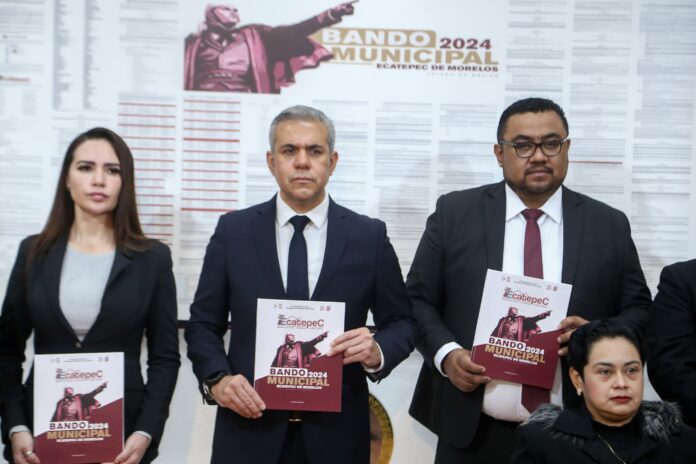 El munícipe consideró que “con el nuevo bando Municipal se construye un instrumento que favorece a la armonía social y sienta las bases para seguir caminando de la mano con la gente, con los empresarios, con los comerciantes, iglesias y más representaciones de los sectores sociales en la recuperación y restauración de Ecatepec”.