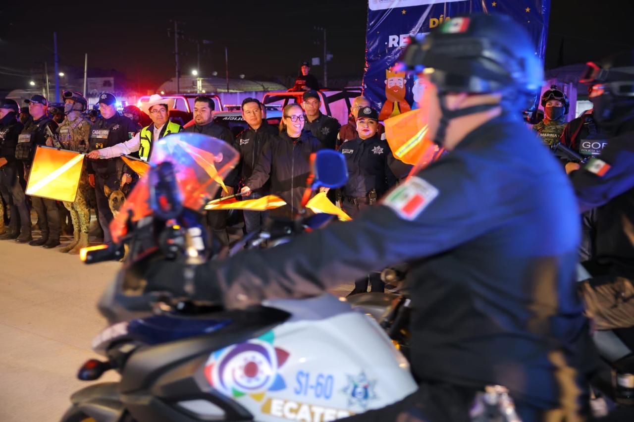 “Estamos ya por concluir las fiestas decembrinas y queremos concluirlas, por supuesto, cuidando de la seguridad de todos los Reyes Magos”, afirmó la alcaldesa durante el arranque del dispositivo en el Sector 1 de la colonia Granjas Ecatepec.