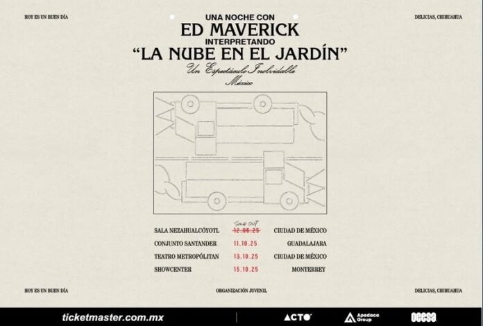 Tras el rotundo sold out de su concierto en la Sala Nezahualcóyotl, Ed Maverick anuncia tres nuevas fechas que lo llevarán a importantes escenarios del país. El cantautor chihuahuense te acurrucará el corazón, con la intensidad y la honestidad emocional que lo han convertido en una de las voces más queridas de la escena musical contemporánea.
