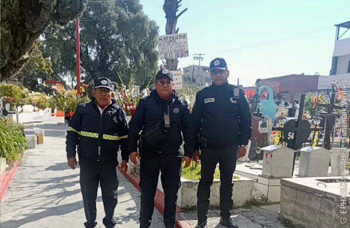 Refuerzan seguridad en panteones de Naucalpan; más de 150 elementos resguardan tradición de Día de Muertos