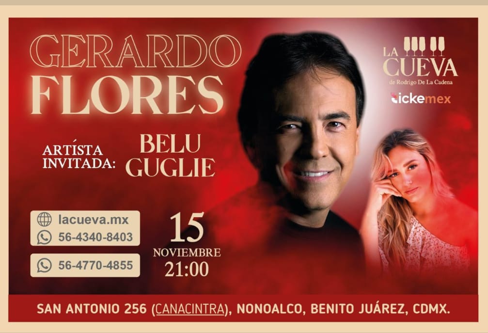 El próximo viernes 15 de noviembre a las 9 de la noche, La Cueva de Rodrigo de la Cadena abrirá sus puertas para recibir a Gerardo Flores, un destacado cantautor y productor mexicano cuya trayectoria lo ha posicionado como uno de los grandes exponentes de la música romántica y del bolero contemporáneo. Esta presentación especial promete una noche de emotividad y talento, que dejará una profunda huella en los asistentes. Además, la velada contará con la participación de Belu Guglié como artista invitada, agregando un matiz fresco y cautivador a la noche. Para aquellos que desean formar parte de esta noche inolvidable, los boletos están disponibles a través del sistema Tickemex y en el sitio oficial de La Cueva (lacueva.mx).