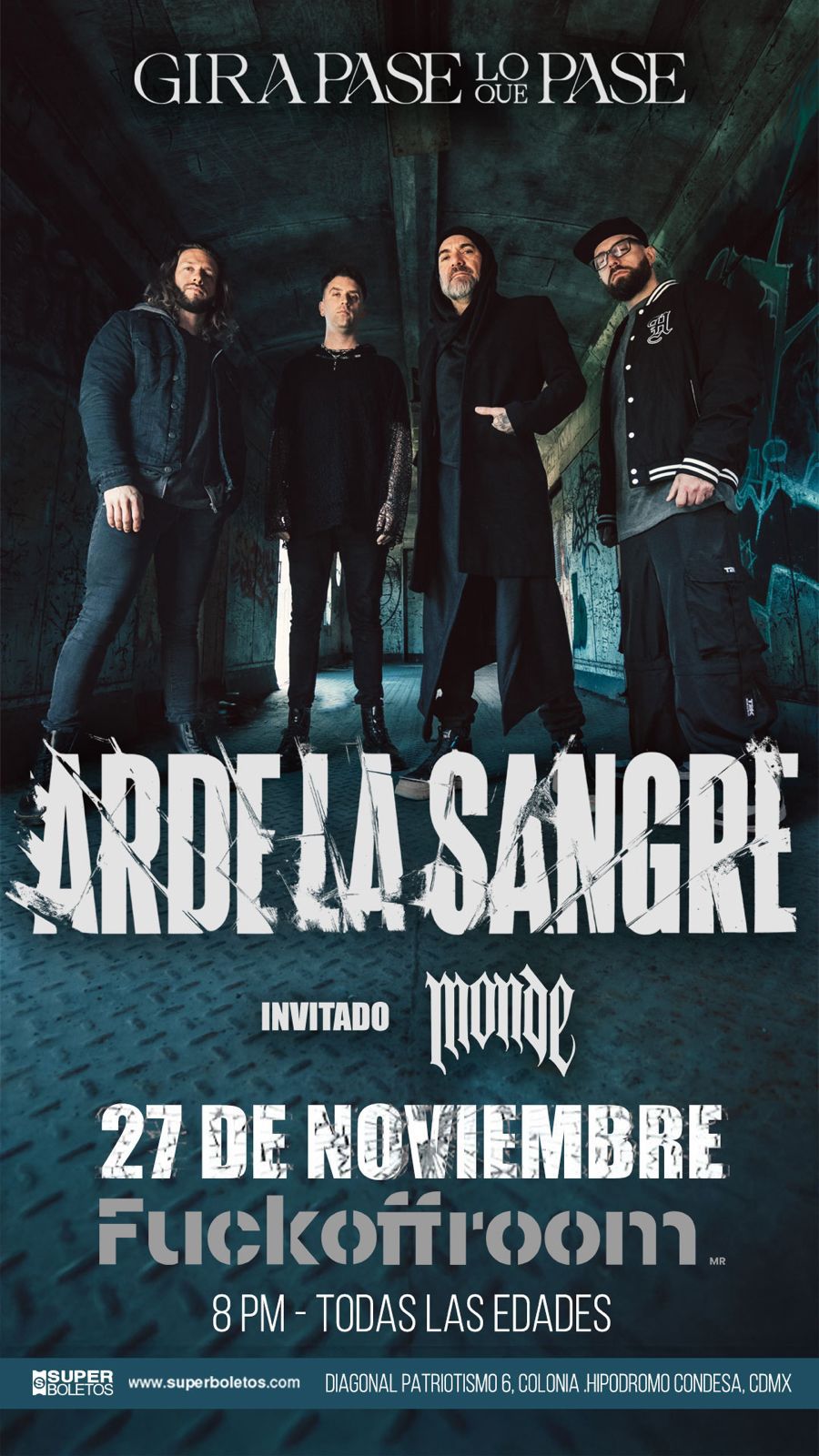 Arde la Sangre vuelve a encender su estallido eléctrico con una presentación que promete convertirse en uno de los momentos más intensos del año. El próximo 27 de noviembre, la banda argentina subirá al escenario de FuckOffRoom a las 8 de la noche, en un show donde la crudeza, la emoción y el peso del metal alternativo se combinarán con la energía de la agrupación invitada Monde. Los boletos, disponibles a través del sistema Superboletos, anticipan una noche donde el rock no solo se escucha: se respira, se siente y se vuelve una experiencia colectiva.
