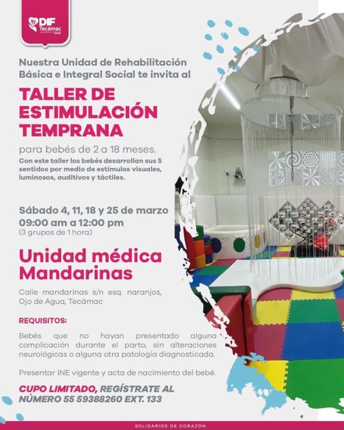 Para incentivar el cuidado de la salud en los menores del municipio, el sistema Desarrollo Integral de la Familia (DIF) de Tecámac, llevará a cabo el primer Taller de Estimulación Temprana de este 2023.