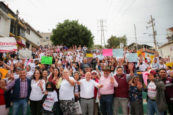 El abanderado de los partidos Morena, PT y Verde, Raciel Pérez Cruz, acudió esta tarde a las colonias Lomas de San Andrés Atenco, Benito Juárez, Fraccionamiento Cumbres del Valle e Isidro Fabela para reunirse con las estructuras territoriales y los vecinos. Ahí, escuchó las preocupaciones y peticiones de la ciudadanía, dejándoles en claro que su gobierno será incluyente y franco; un proyecto en donde todos podrán participar.