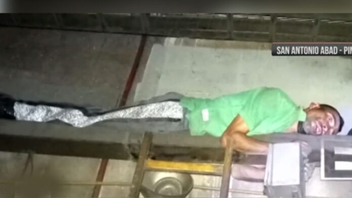 El video compartido por Imagen Televisión se observa al sujeto que viste playera verde y pants color gris con pinzas que utilizaba para cortar los cables.