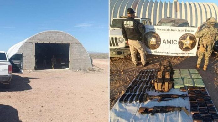 Encuentran ‘narcobúnker’ en Sonora con un arsenal y autos robados