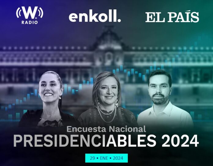 La prestigiosa casa de estudios de opinión Enkoll dio a conocer su más reciente encuesta nacional “Presidenciables 2024”, en la que se midió a los tres aspirantes a la Presidencia de México: Claudia Sheinbaum, Xóchitl Gálvez, y por primera vez, a Jorge Álvarez Máynez. Se realizaron 834 entrevistas a ciudadanos en todo el país, en sus propios domicilios, del 19 al 22 de enero de este año.