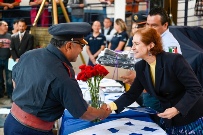En agradecimiento por su valerosa labor, la presidenta municipal Angélica Moya Marín entregó estímulos económicos por 2 mil 500 pesos a bomberos, paramédicos y personal de protección civil municipal, además de 100 uniformes, seis motosierras y dos rompedoras de concreto, así como reconocimientos a elementos destacados.
