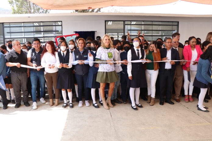 Durante su visita a esta comunidad, la presidenta municipal, Romina Contreras Carrasco, acudió a la secundaria “Bernardo Balbuena”, en donde entregó la construcción de tres nuevas aulas y una biblioteca, con una superficie de 262 metros cuadrados, además de realizar la rehabilitación integral del plantel.