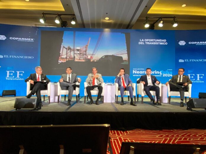 El Corredor Interoceánico del Istmo de Tehuantepec es un proyecto con gran potencial de desarrollo sostenible para impulsar el fenómeno de la relocalización de las empresas hacia zonas más cercanas a los Estados Unidos, al convertirse en un polo de logística integral con cuatro puertos marinos, más de mil 100 kilómetros para el ferrocarril, e impactará económicamente a 2.4 millones de personas en los 46 municipios oaxaqueños en la región del Istmo de Tehuantepec, concluyeron los participantes de la mesa sobre el tema en el Encuentro Nearshoring Talks 2024 realizado por la Coparmex Ciudad de México.