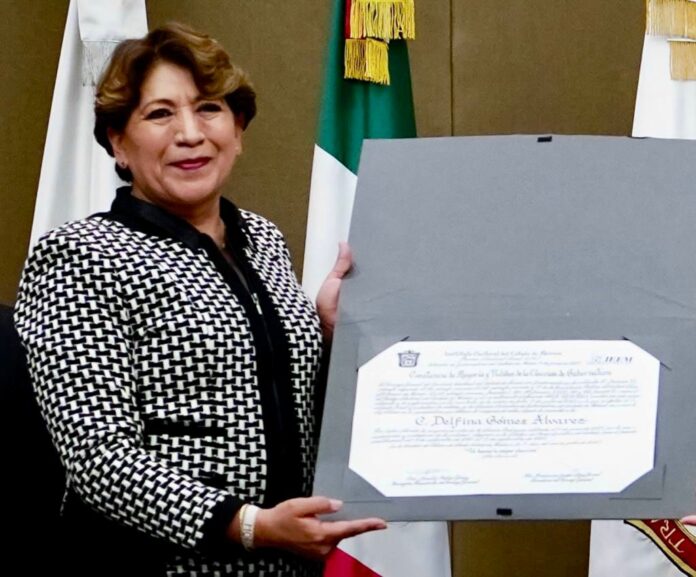 La maestra Delfina Gómez recibió hoy la Constancia de Mayoría y Validez de la Elección 2023 que la acredita como la Gobernadora Electa del Estado de México.