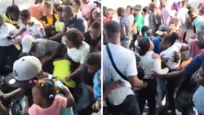 En las imágenes se puede observar que, en medio de la estampida, hombres, mujeres e incluso niños terminan en el piso, mientras otros les pasan encima.
