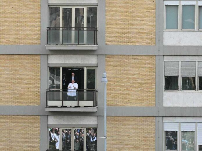 El jefe de los 1,400 millones de católicos del mundo estuvo en el balcón durante dos minutos y fue dado de alta de inmediato.