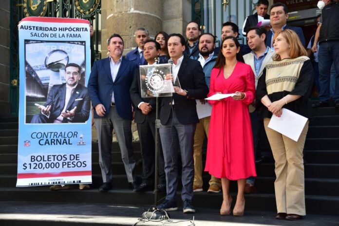En el exterior del Congreso capitalino, el Presidente del PAN en la CDMX, Andrés Atayde Rubiolo; el Diputado Federal Héctor Saúl Téllez; así como legisladores de la bancada capitalina, señalaron diversas irregularidades, la persecución política y una falta de transparencia del contralor “carnal”.