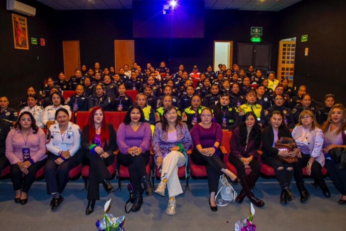 Elementos de distintas corporaciones policiales participaron en el Primer Foro Regional Policial de Mujeres Empoderadas en la Seguridad, organizado por la Alcaldía Azcapotzalco en el marco de las actividades conmemorativas por el Día Internacional de la Mujer.