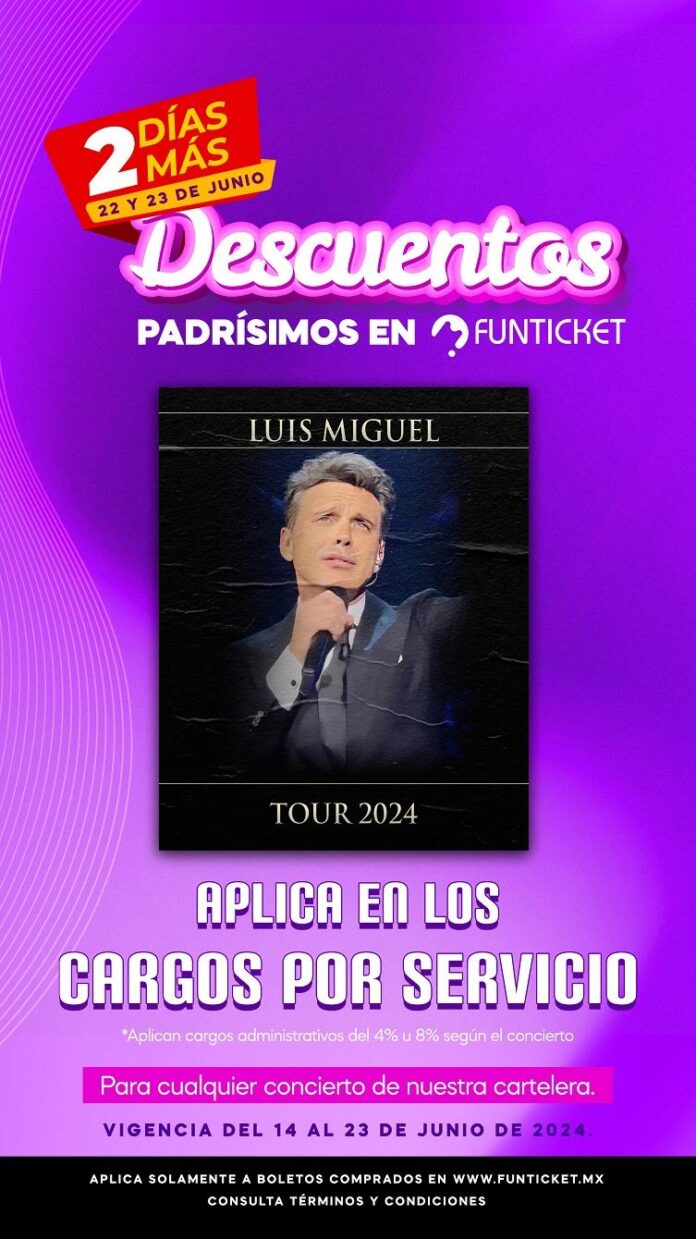 En una movida sin precedentes, Funticket la reconocida boletera que ha crecido más en los últimos dos años gracias al éxito obtenido ha decidido extender la “Padrísima Promoción” dos días más, en una campaña que promete revolucionar la experiencia de asistir a conciertos en México. De este modo la promoción se extiende al sábado 22 y domingo 23 de Junio, ofreciendo a los entusiastas de la música la oportunidad de adquirir entradas para sus shows favoritos con descuentos significativos, aplicables a los cargos por servicio.