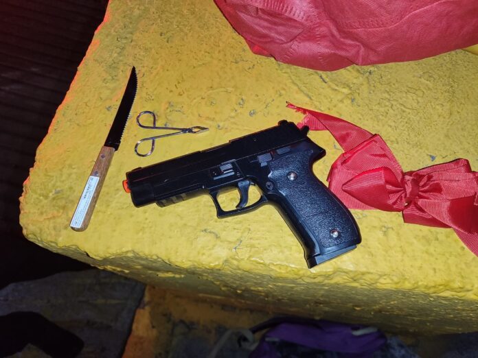 El sujeto detenido respondió al nombre de Jonathan “N” de 24 años de edad y a quien se le encontró entre sus pertenencias, una pistola y un cuchillo.
