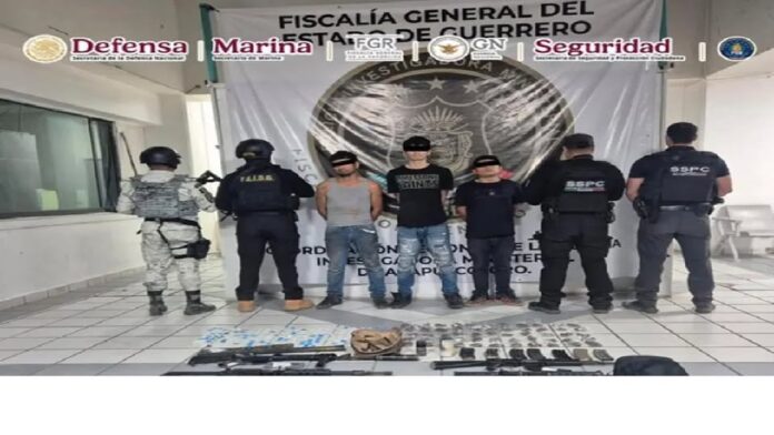Los efectivos realizaron un despliegue coordinado en la calle Las Rosas, de la colonia Rubén Figueroa Alcocer, en el municipio de Acapulco de Juárez, ejecutaron la orden de cateo, donde detuvieron a tres hombres y aseguraron: