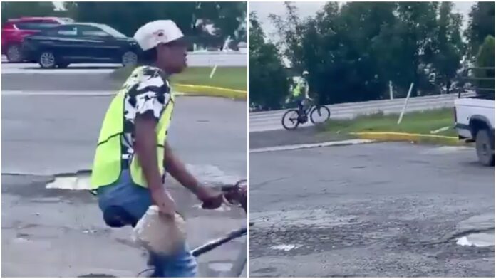 En las imágenes se puede ver a un hombre de entre 25 y 30 años, vistiendo un chaleco reflejante y portando una roca en la mano. El individuo se detuvo al percatarse de que estaba siendo grabado.