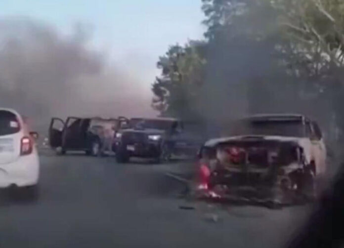 Entre los vehículos que fueron incendiados, de acuerdo con las imágenes, principalmente de aprecian camionetas, las cuales quedaron totalmente destrozadas. Otras permanecieron a media carretera con las puertas abiertas después de ser abandonas.