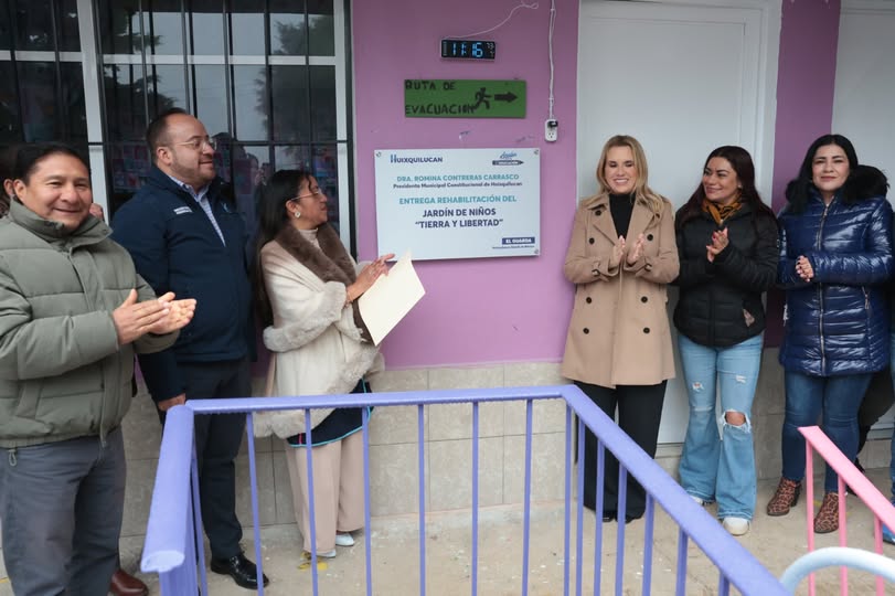 “Agradezco la disposición y el respaldo de las autoridades educativas, porque es en estos espacios donde se forma el futuro de Huixquilucan”, afirmó la presidenta municipal Romina Contreras Carrasco al entregar la nueva techumbre y el módulo de juegos infantiles en el Jardín de Niños Tierra y Libertad, en la comunidad de El Guarda.