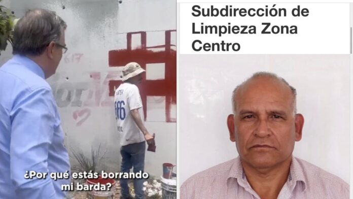 Identifican como funcionario de CDMX a hombre que borro barda de Ebrard