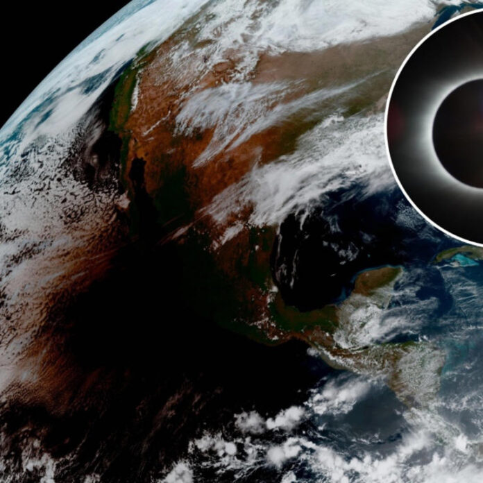Imagen del eclipse solar en Mazatlán vista desde el espacio
