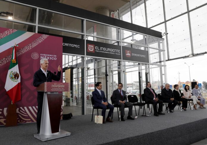 En la Estación Zinacantepec de este sistema de transporte, el mandatario estatal apuntó que “El Insurgente” es único en su tipo en América Latina y colocará a la entidad a la vanguardia en materia de transporte público de alta capacidad.
