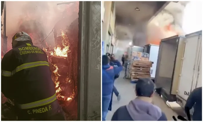 “En el área de descarga se quemaron tres cajas de tráiler en su totalidad; procedimos a extinguir el fuego”, reportó el Heroico Cuerpo de Bomberos de la Ciudad de México.