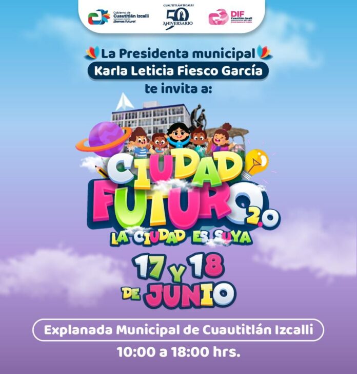 En el marco del 50 Aniversario, el Gobierno Municipal que encabeza Karla Fiesco García invita a las familias izcallenses a disfrutar de Ciudad Futuro 2.0 este 17 y 18 de Junio de 10:00 am a 6:00 pm en la Explanada Municipal, Historia sobre Ruedas el 18 de junio con un acceso limitado de 7:00 am a 9:30 am en el estacionamiento del Parque de las Esculturas y el 23 de Junio el Video Mapping con Historia con dos funciones a las 8:00 pm y a las 9:00 pm en el Palacio Municipal.