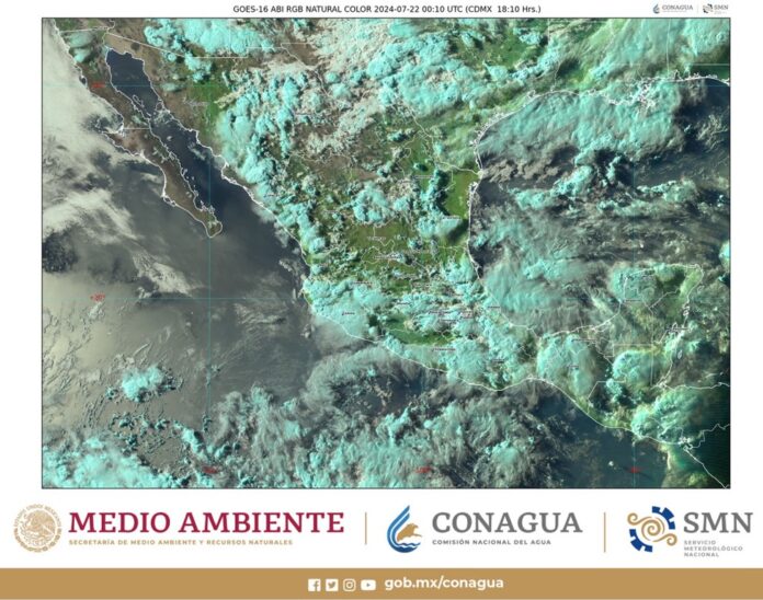 Se prevén lluvias intensas en Coahuila, Colima, Chiapas, Estado de México, Guerrero, Jalisco, Michoacán, Morelos, Nayarit, Oaxaca, Puebla y Veracruz; muy fuertes en Chihuahua, Ciudad de México, Durango, Guanajuato, Hidalgo, Nuevo León, Querétaro, Sinaloa, Sonora, Tabasco, Tamaulipas y Tlaxcala; fuertes en Aguascalientes, Campeche, Quintana Roo, San Luis Potosí, Yucatán y Zacatecas; e intervalos de chubascos en Baja California y Baja California Sur.