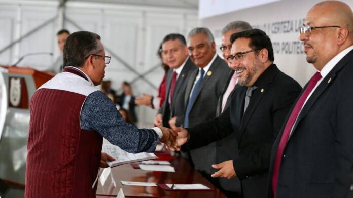 Señaló que con el apoyo conjunto de autoridades politécnicas y representantes de la Sección 60 del SNTE, se impulsa su desarrollo profesional, y asumen el compromiso y responsabilidad de formar a los profesionistas del futuro para enfrentar los desafíos nacionales e internacionales.