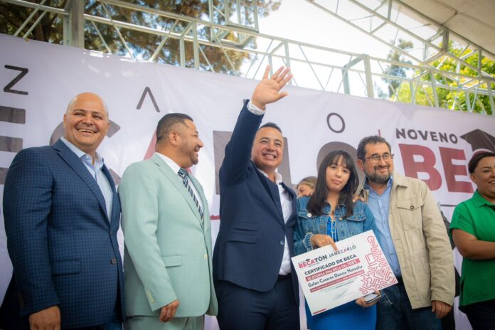 Durante la ceremonia, algunos estudiantes recién graduados subieron al escenario para recibir un reconocimiento y animaron a los nuevos becarios a no abandonar sus estudios. Mariana Calderas, una beneficiaria que logró convertirse en abogada, compartió su experiencia: “Gracias al Becatón, hoy soy abogada. Estoy feliz de que mis padres me vean como una profesional realizada. Le agradezco al alcalde Janecarlo Lozano por ayudarnos a cumplir nuestros sueños. Políticos como él son los que realmente impulsan la Cuarta Transformación”.