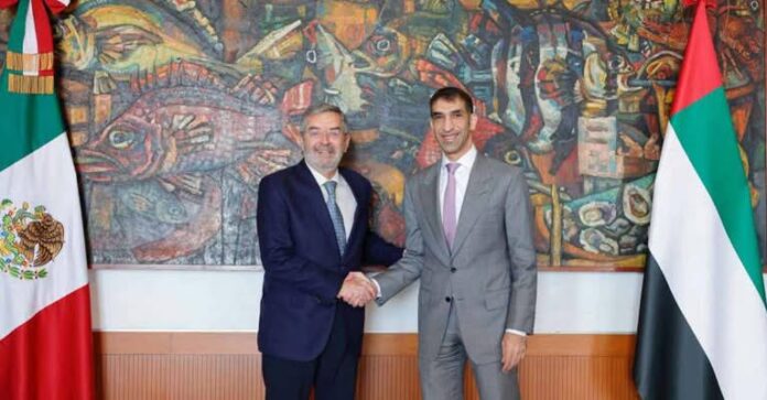 En la Cancillería, De la Fuente y Al Zeyoudi refrendaron la relevancia política que Emiratos Árabes Unidos y México se otorgan mutuamente en sus respectivas regiones, a casi 50 años de haberse establecido nuestras relaciones diplomáticas.