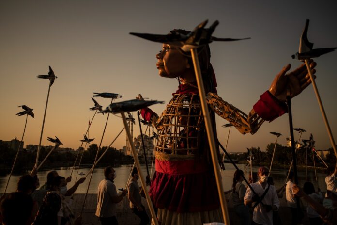 En su recorrido previo por 14 países, la marioneta monumental ha ofrecido su mensaje de paz, tolerancia y solidaridad hacia las personas migrantes.