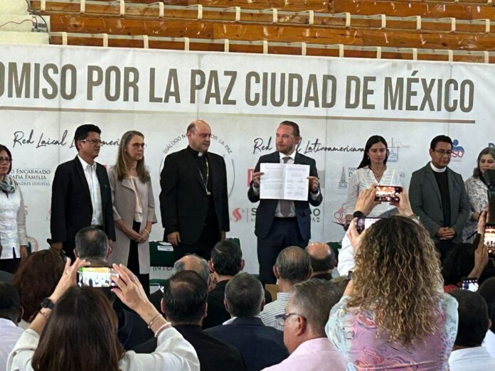 Santiago Taboada, candidato a la Jefatura de Gobierno por la coalición “Va X La CDMX”, firmó el “Compromiso por la paz: Estrategias de política pública para la construcción de paz”, impulsado por la Conferencia del Episcopado Mexicano y la Universidad Intercontinental, en el que señaló la importancia de construir una agenda de seguridad y de paz, por lo que, dijo, que primero se deben reconocer los problemas para poder solucionarlos, tales como el crecimiento del 300% de personas desaparecidas en la Ciudad de México en los últimos seis años.