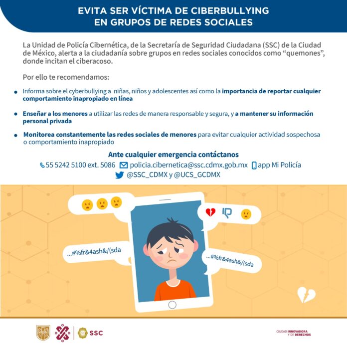 Con el fin de proteger la seguridad de los menores de edad que navegan en el ciberespacio, la Unidad de Policía Cibernética de la Secretaría de Seguridad Ciudadana (SSC) de la Ciudad de México, alerta sobre grupos en redes sociales conocidos como “quemones”, donde incitan el ciberacoso.