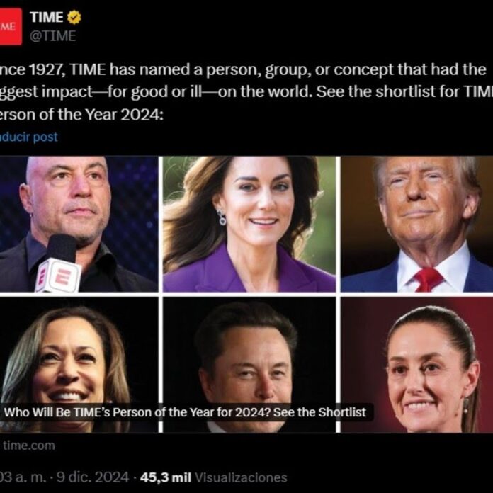 El resto de los nominados de este 2024 son la vicepresidenta y excandidata presidencial de EEUU, Kamala Harris; la princesa de Gales, Kate Middleton; el magnate Elon Musk; la economista Yulia Navalnaya, quien es esposa del fallecido opositor ruso Alexei Navalny; el primer ministro de Israel, Benjamin Netanyahu; el expresidente de la Reserva Federal de Estados Unidos, Jerome Powell; el podcaster Joe Rogan; el presidente electo de EEUU, Donald Trump; y el CEO de Meta, Mark Zuckerberg.