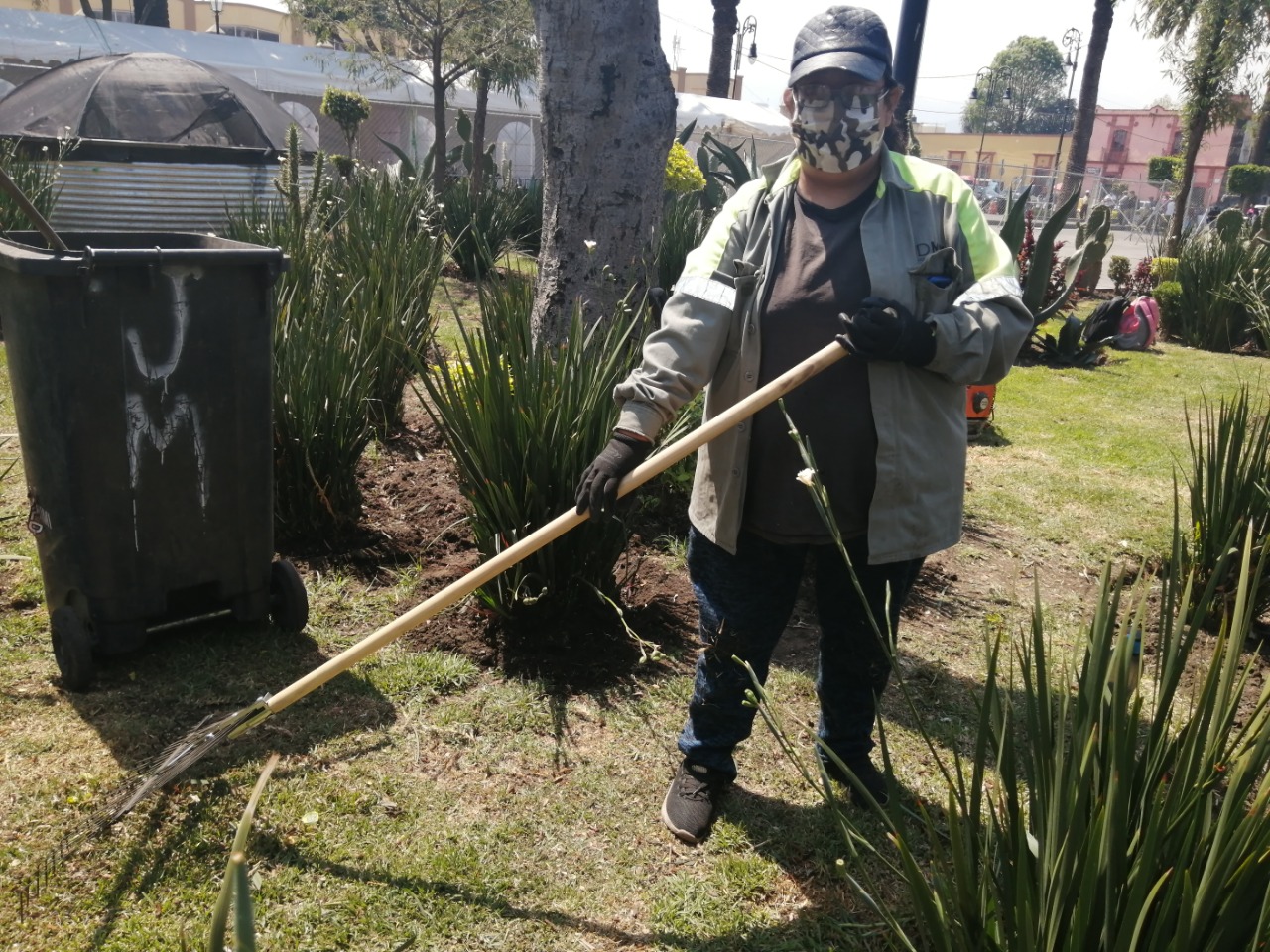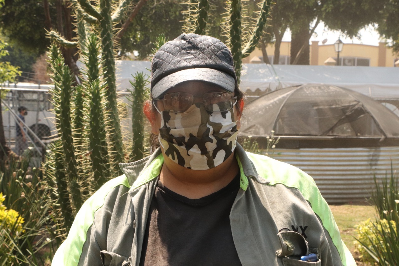 De manera complementaria, desde las ocho de la mañana, retira la basura que la gente deja en las áreas ajardinadas. Asegura que mantener los espacios limpios es cuestión de educación y cultura cívica, pues cuenta que además de cubrebocas y pañuelos desechables, la gente deja cadáveres de animales.
