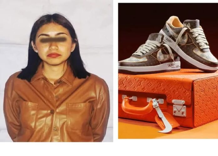 La mujer de 18 años fue detenida el pasado sábado en posesión de los Nike Air Force 1 de Louis Vuitton en madera tallada, en calles de la colonia Morelos, alcaldía Cuauhtémoc.