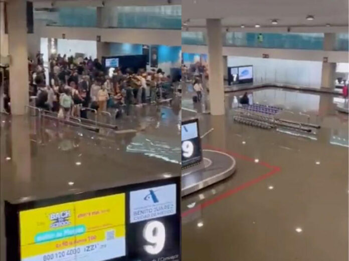 La intensa lluvia registrada la tarde de este 21 de agosto en varios puntos de la Ciudad de México provocaron que las instalaciones del Aeropuerto Internacional de la Ciudad de México (AICM) se encharcaran, según se difundió en algunos videos que circulan en redes sociales.