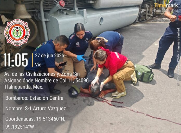 Tlalnepantla, Edomex.— Elementos de la Comisaría General de Proximidad y Seguridad Ciudadana, junto con personal de Protección Civil y Gestión Integral de Riesgos de Tlalnepantla, brindaron auxilio inmediato a un adulto mayor que fue embestido por una locomotora en el pueblo de San Pablo Xalpa, a la altura de Los Rosarios.