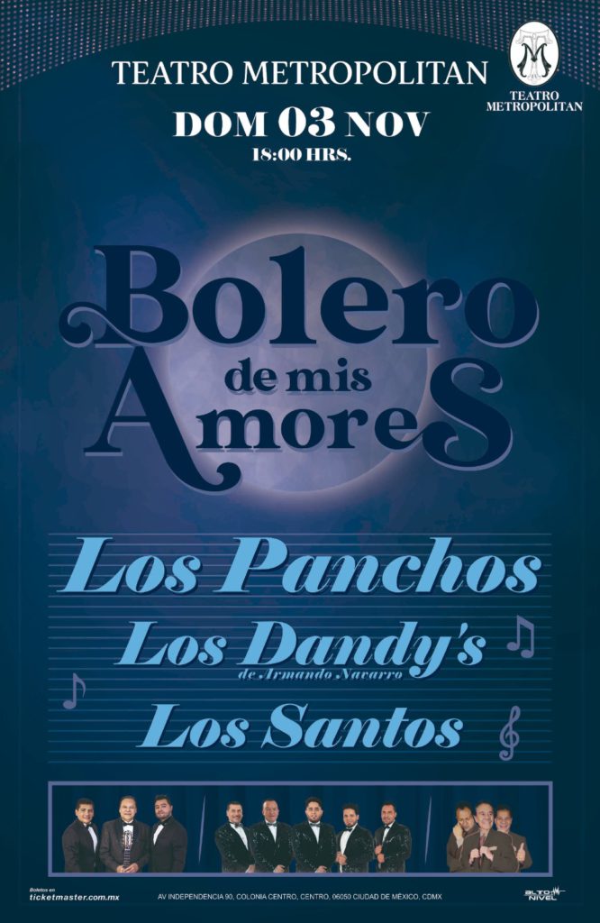 El próximo domingo 3 de noviembre, el Teatro Metropolitan de la Ciudad de México abrirá sus puertas para celebrar una velada inolvidable bajo el nombre de “Bolero de mis Amores”, un evento que reunirá a tres de las agrupaciones más legendarias del bolero mexicano: Los Panchos, Los Dandys y Los Santos. Esta cita promete revivir la esencia romántica de un género que ha dejado una marca indeleble en la historia musical de Latinoamérica. Con una propuesta que busca no solo homenajear los éxitos del pasado, sino también reavivar el amor por el bolero en las nuevas generaciones, la noche del 3 de noviembre será un auténtico viaje en el tiempo, plagado de emoción y nostalgia. Boletos a la venta en el Sistema Ticketmaster y en taquillas del inmueble.