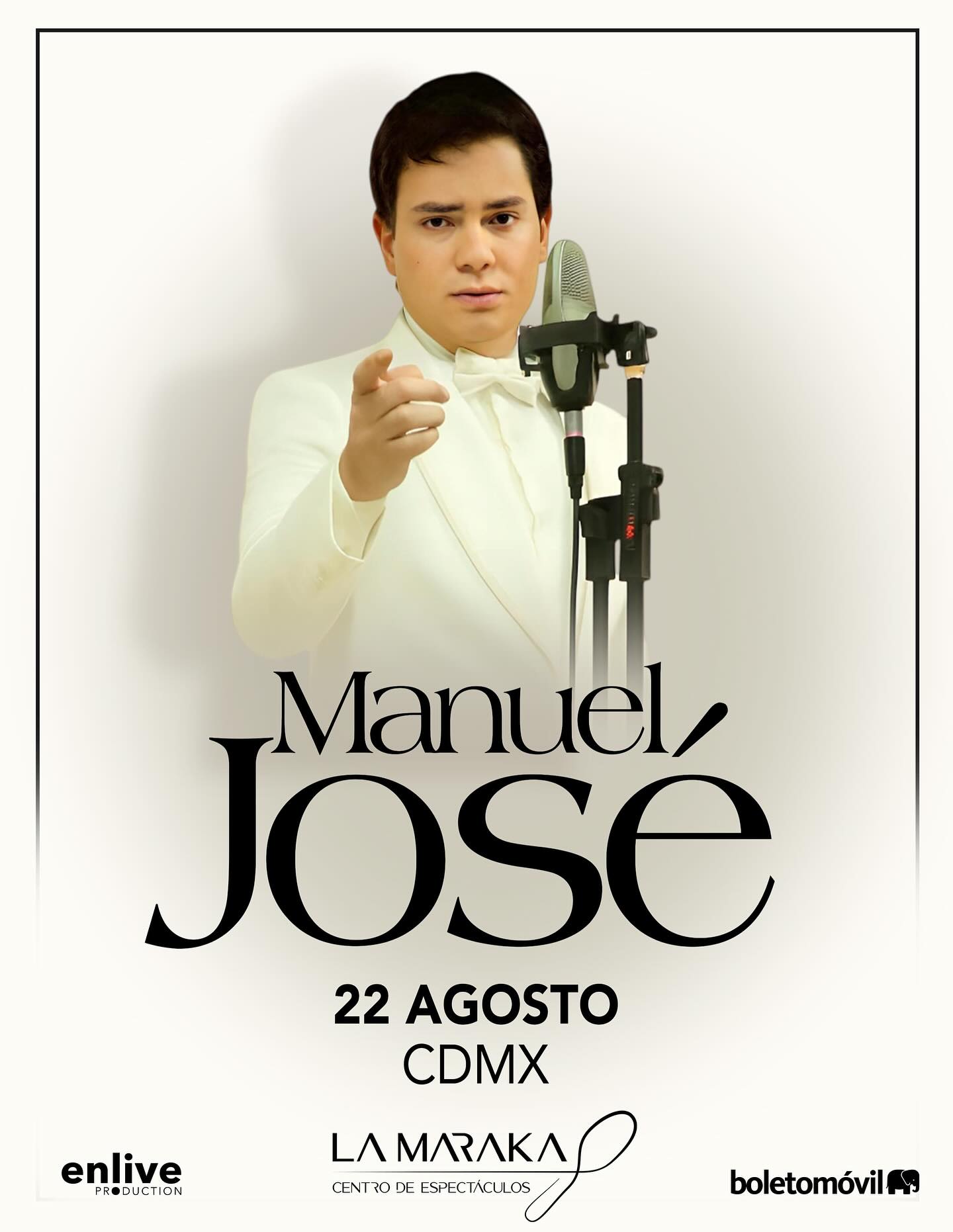 Hay noches que no se viven dos veces, instantes que el tiempo no puede imitar y melodías que parecen haberse escrito para acariciar el alma. El próximo viernes 22 de agosto, La Maraka se vestirá de gala para recibir al cantante colombiano Manuel José, quien volverá a conquistar los corazones mexicanos con una velada que promete ser histórica. En un acto de amor profundo hacia la música romántica y como un tributo eterno al legado del inolvidable José José, el escenario del Centro de Espectáculos La Maraka vibrará al compás de una voz que ha sabido atravesar generaciones, fronteras y silencios. Los boletos están disponibles en el Sistema Boletomovil y en taquillas del inmueble.
